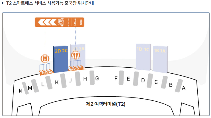 📌 위치: 제2터미널 2층 출국장 2번 출입구 옆 — 2번과 3번 사이에 ‘Smart Pass Enrollment’ 표지판이 보입니다.